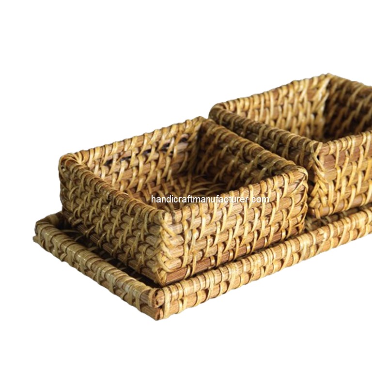 At Handicraft Manufacturer, we offer a comprehensive approach to crafting exceptional Rattan Small Storage Trays. Our meticulous process encompasses every stage of production, from the initial spark of inspiration to the final, flawless product. From conceptualizing innovative designs and sourcing premium materials to meticulous prototyping, sample refinement, and rigorous quality control, we are committed to delivering rattan trays that surpass expectations. Our end-to-end manufacturing ensures that each piece is a testament to our dedication to artistry and functionality.