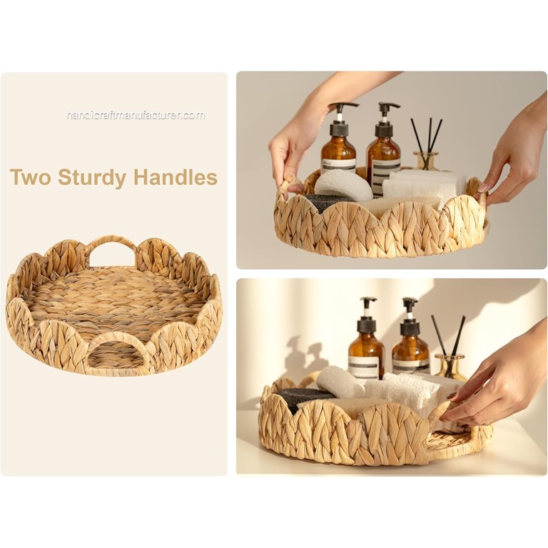 Elevate your home décor and dining experience with the Water Hyacinth Serving Tray, a masterpiece of craftsmanship and sustainable design. Handwoven from premium water hyacinth, this tray exudes rustic charm and enduring elegance, seamlessly blending into any interior style.